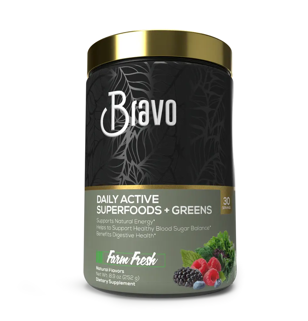 Elevate your wellness routine with Bravo Health Daily Active Superfoods + Greens! Packed with nutrient-dense superfoods, powerful greens, and essential nutrients, this all-in-one formula supports smooth, sustained energy, healthy blood sugar levels, and glowing hair and skin. Designed to nourish your gut and fuel your active lifestyle, it’s the ultimate daily boost for feeling vibrant and balanced. Take the step toward a healthier, happier you with Bravo Health!